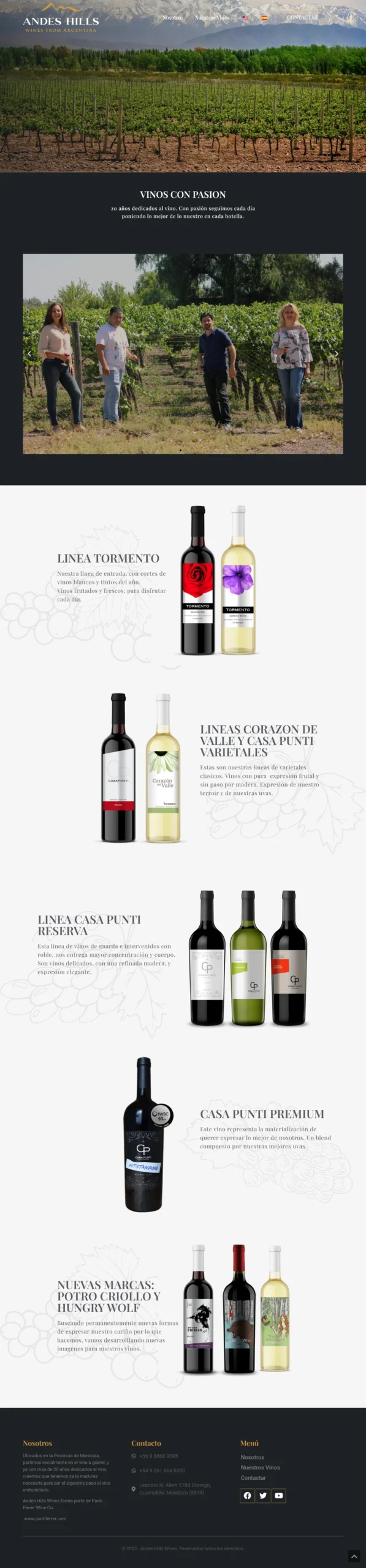 Este sitio web corporativo de bodega incluye un catálogo de productos, descripciones técnicas, formulario de contacto y un selector de idiomas. Está diseñado para promocionar los productos de la bodega y proporcionar información detallada sobre cada producto. Los usuarios pueden navegar por el catálogo, ver las descripciones técnicas y ponerse en contacto con la empresa a través del formulario. También pueden seleccionar su idioma preferido para una experiencia personalizada.