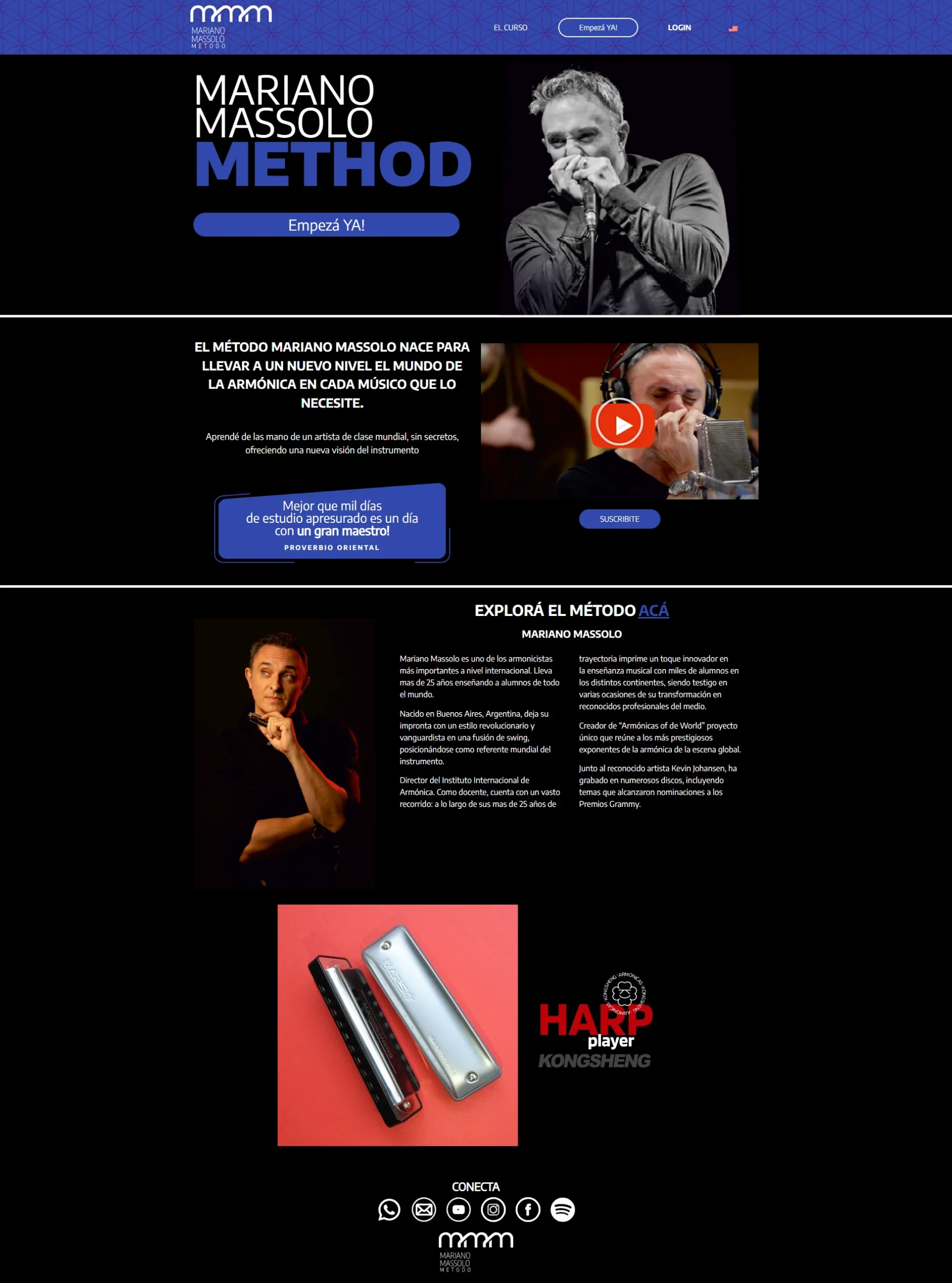 Desarrollo web de marianomassolo.com, el sitio profesional de un proyecto musical que combina formación, producción y trayectoria artística en una sola plataforma digital.