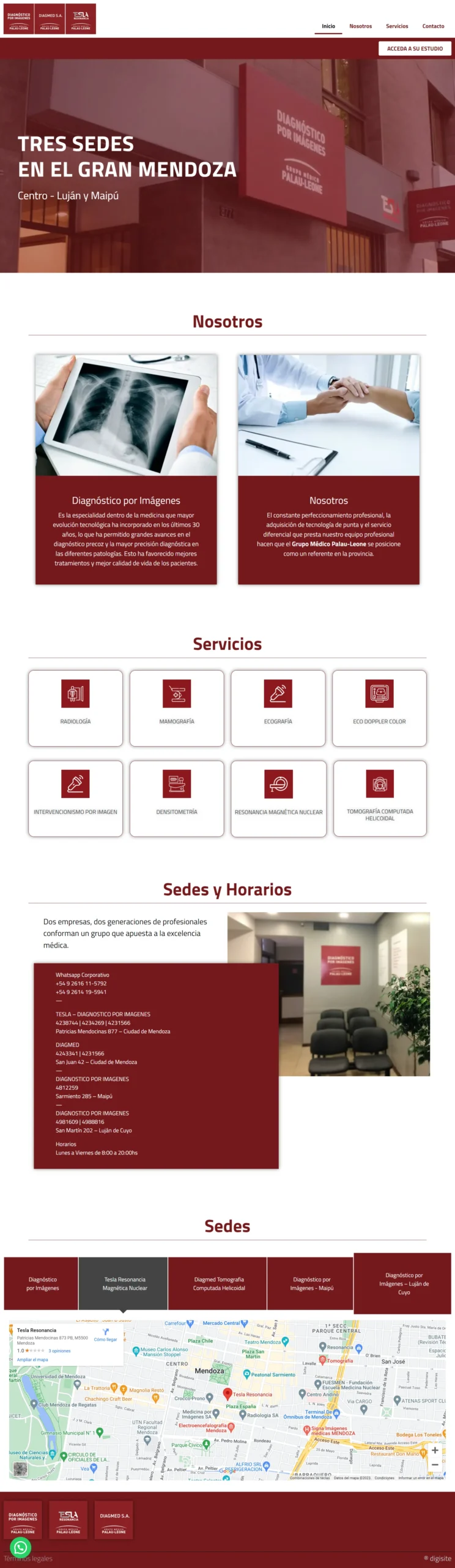 Este es un sitio web corporativo de un laboratorio de estudios por imágenes, es una plataforma especializada que ofrece un catálogo completo de servicios, cada uno con una descripción detallada para informar a los pacientes sobre suss capacidades y expertise.