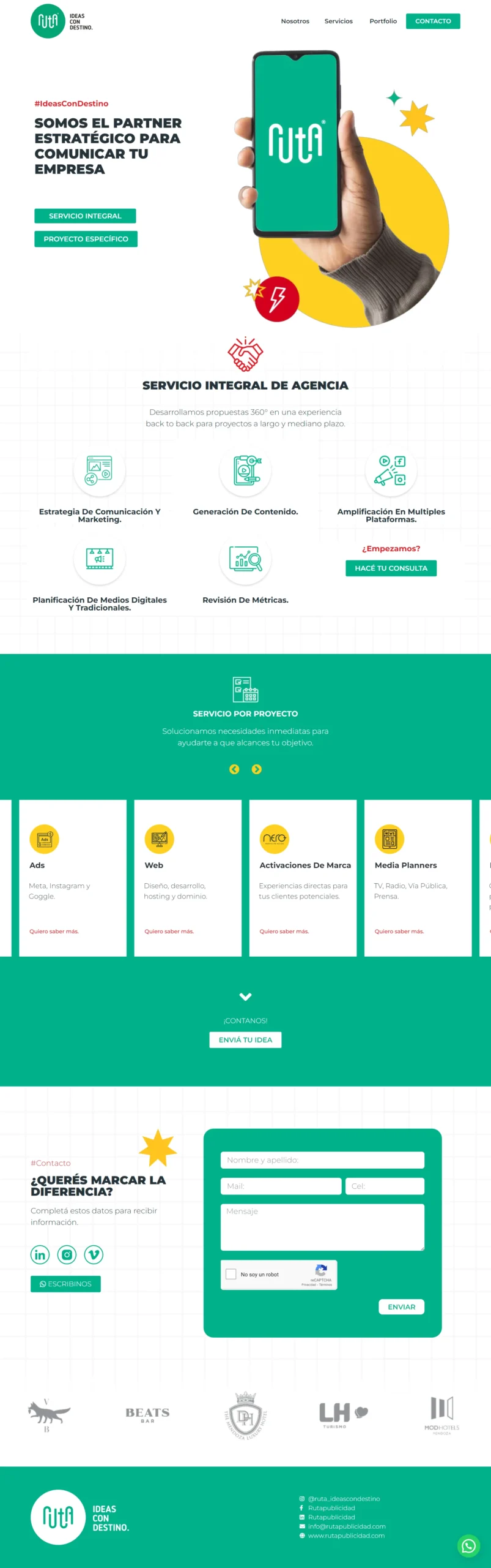 Sitio web corporativo de agencia de comunicación y marketing que funciona como una plataforma en línea que brinda información sobre los servicios ofrecidos por la agencia, así como un formulario de contacto para que los visitantes puedan comunicarse fácilmente.