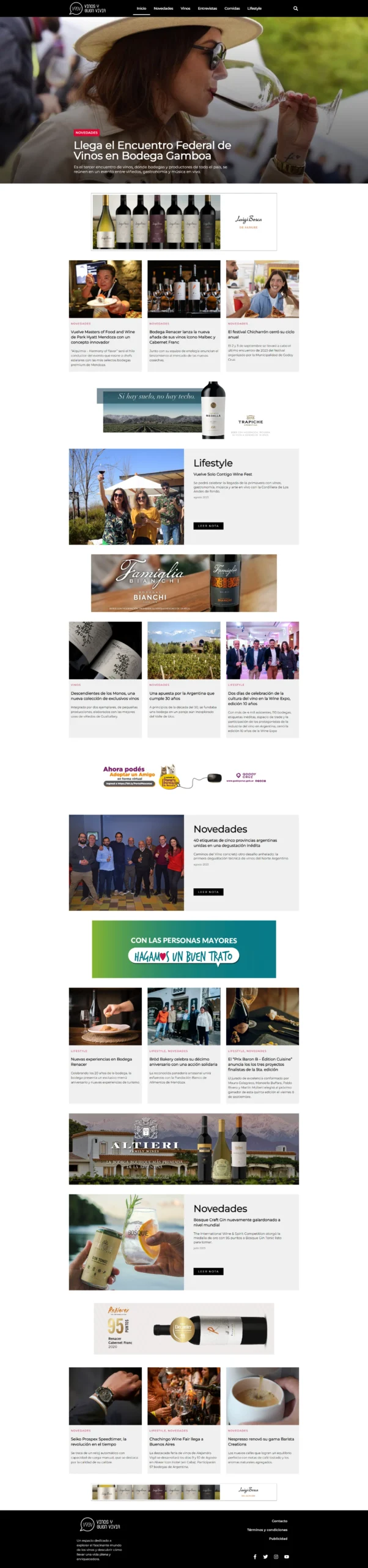 Vinos y Buen Vivir es un portal web especializado en la curación y distribución de contenido relacionado con vinos, bebidas, gastronomía y experiencias hedonistas.