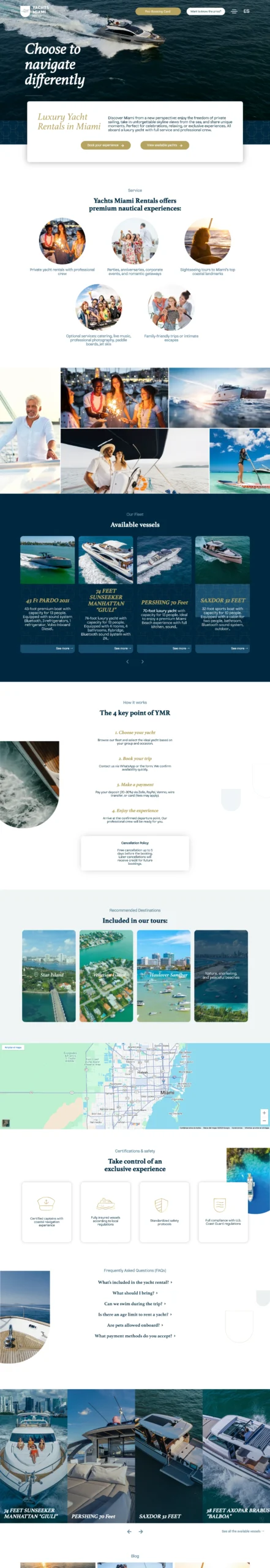Esta solución está pensada para potenciar la presencia digital de Yachts Miami Rentals como un servicio de yachting de lujo, transmitiendo profesionalismo, estilo y confiabilidad desde el primer contacto online.